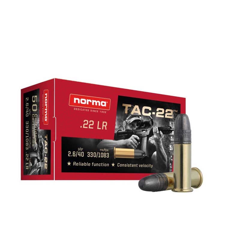 The Norma Range & Training – .22LR TAC-22 40 Gr rounds are specifically tailored for firearms chambered in .22 LR caliber, and it is not recommended for any other applications.