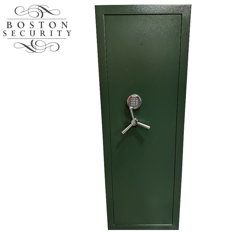 The Boston Security 14 Gun Cabinet is constructed from reinforced 2mm thick steel sides and 5mm door. Designed to meet the requirements of BS 7558 for Police approval, this cabinet can hold up to 14 shotguns or rifles.