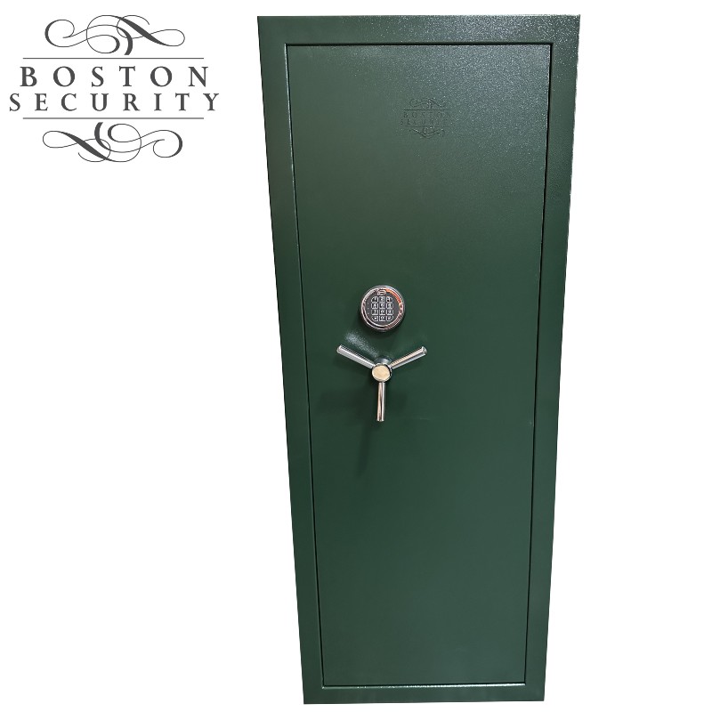 The Boston Security 18 Gun Cabinet is constructed from reinforced 2mm thick steel sides and 5mm door. Designed to meet the requirements of BS 7558 for Police approval, this cabinet can hold up to 18 shotguns or rifles.