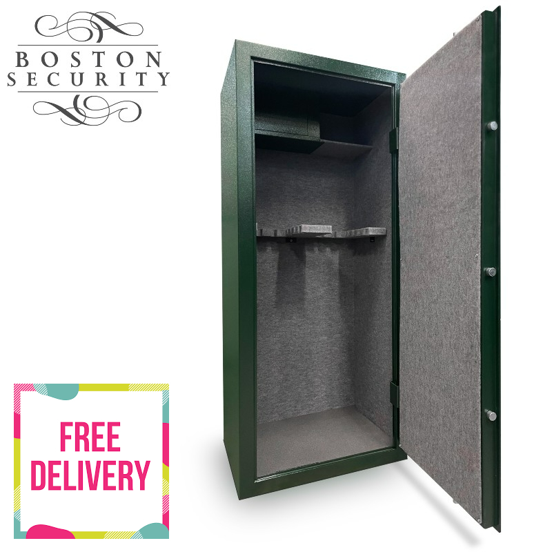 The Boston Security 24 Gun Cabinet is constructed from reinforced 2mm thick steel sides and 5mm door. Designed to meet the requirements of BS 7558 for Police approval, this cabinet can hold up to 24 shotguns or rifles.