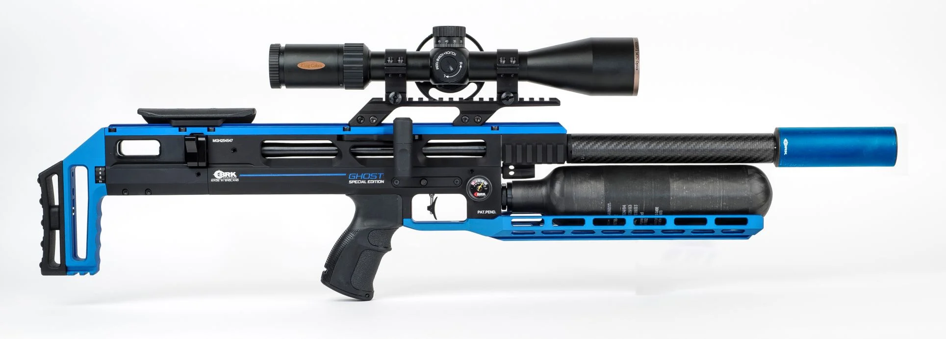 With its match barrel which features a barrel tensioning system, the Ghost Special Edition offers superb accuracy. A serious number of extras are included in the BRK Ghost Plus Blue Special Edition making the package great value and along with its striking blue design, this is an incredibly desirable rifle.
