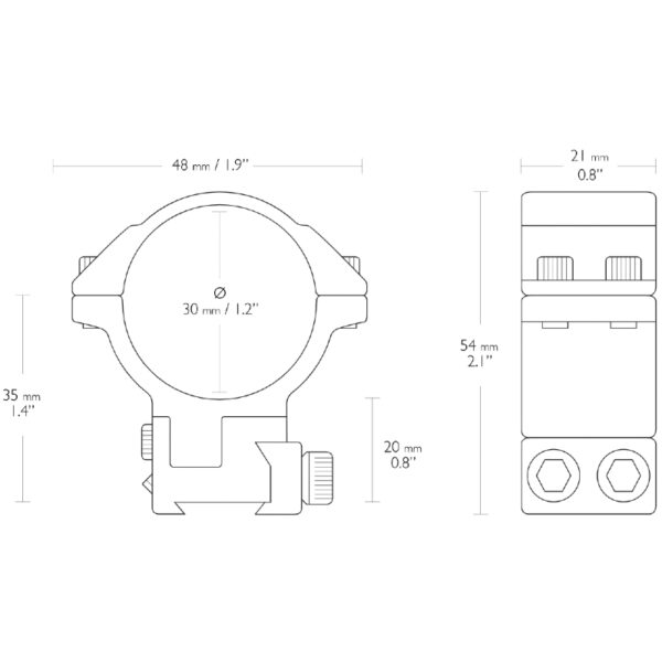 They also feature a retractable recoil stop pin. To prevent scope damage the rings are fitted with an internal, cushioning tape. These mounts are anodised in matte black and supplied with Allen keys.