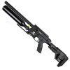 This rifle is fitted with an AR compatible tactical telescopic stock featuring elevation-adjustable cheek piece and adjustable butt pad for a fully customised shooting position. Performance is enhanced with adjustable power, a four-way adjustable trigger, and dual Picatinny rails for mounting accessories. A 425 cc aluminium air tank provides ample air reserve, while the integrated sound moderator ensures quieter shooting.